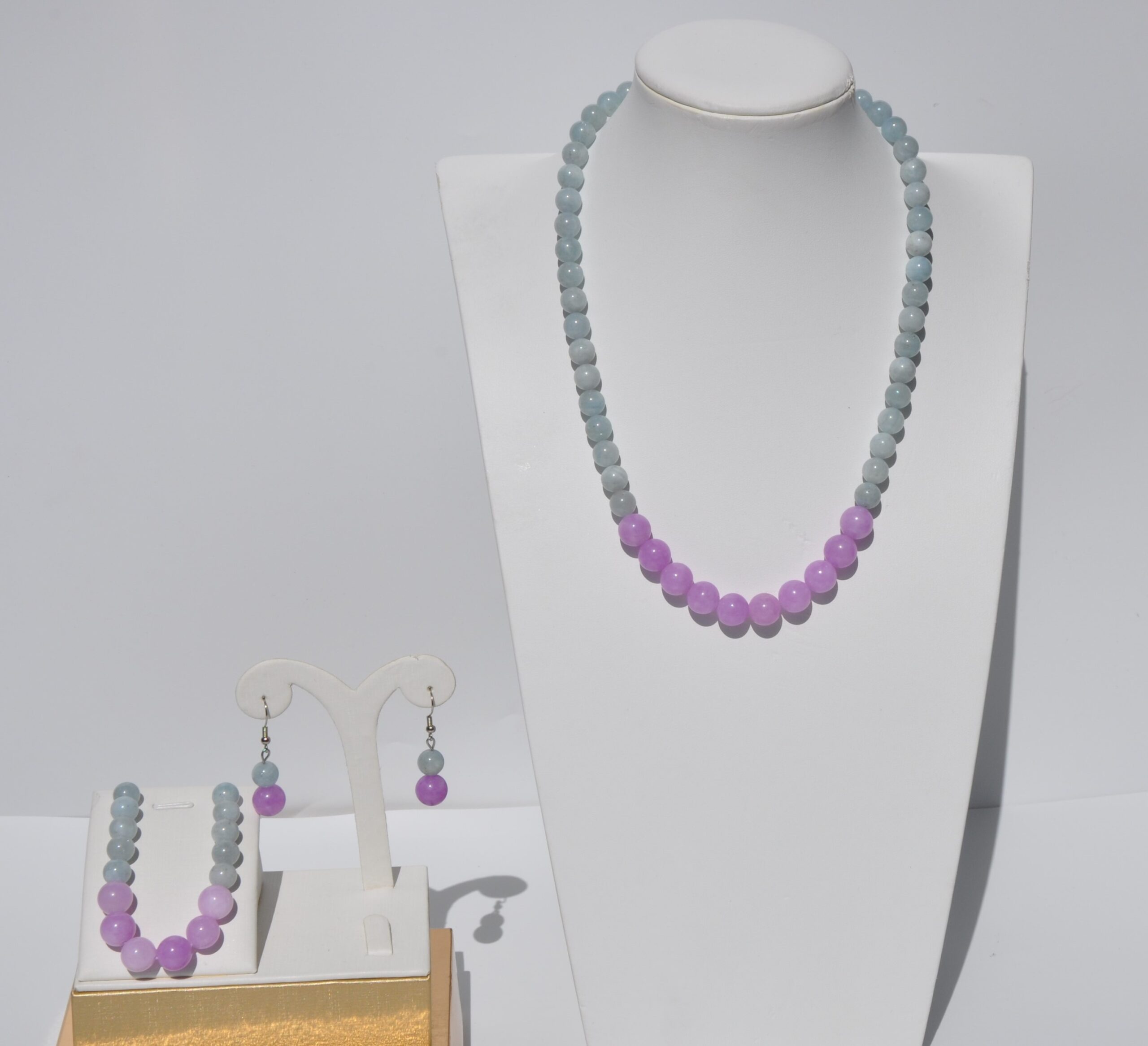 Akuamarin & Kunzit Doğal Taş Takı Seti – Huzurun ve Sevginin Uyumlu Buluşması